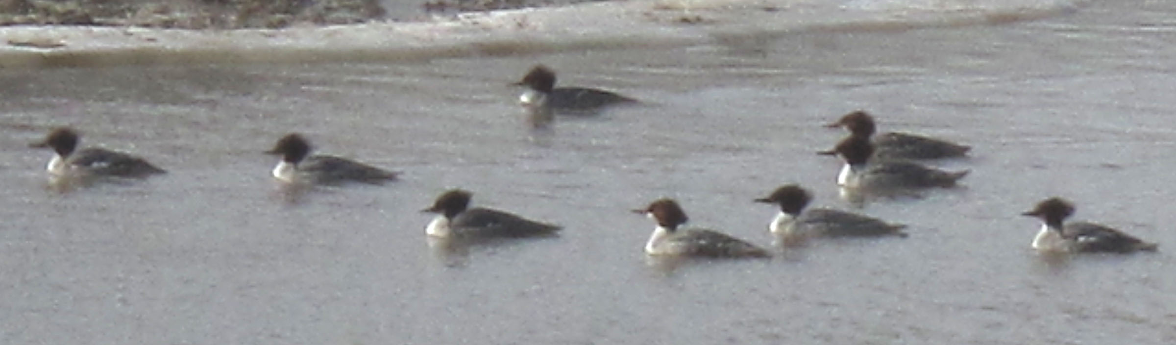 The only other birds, apart from the local waddling ducks, are about 20 very elegant Mergansers which are far too wild to be photographed up close.
